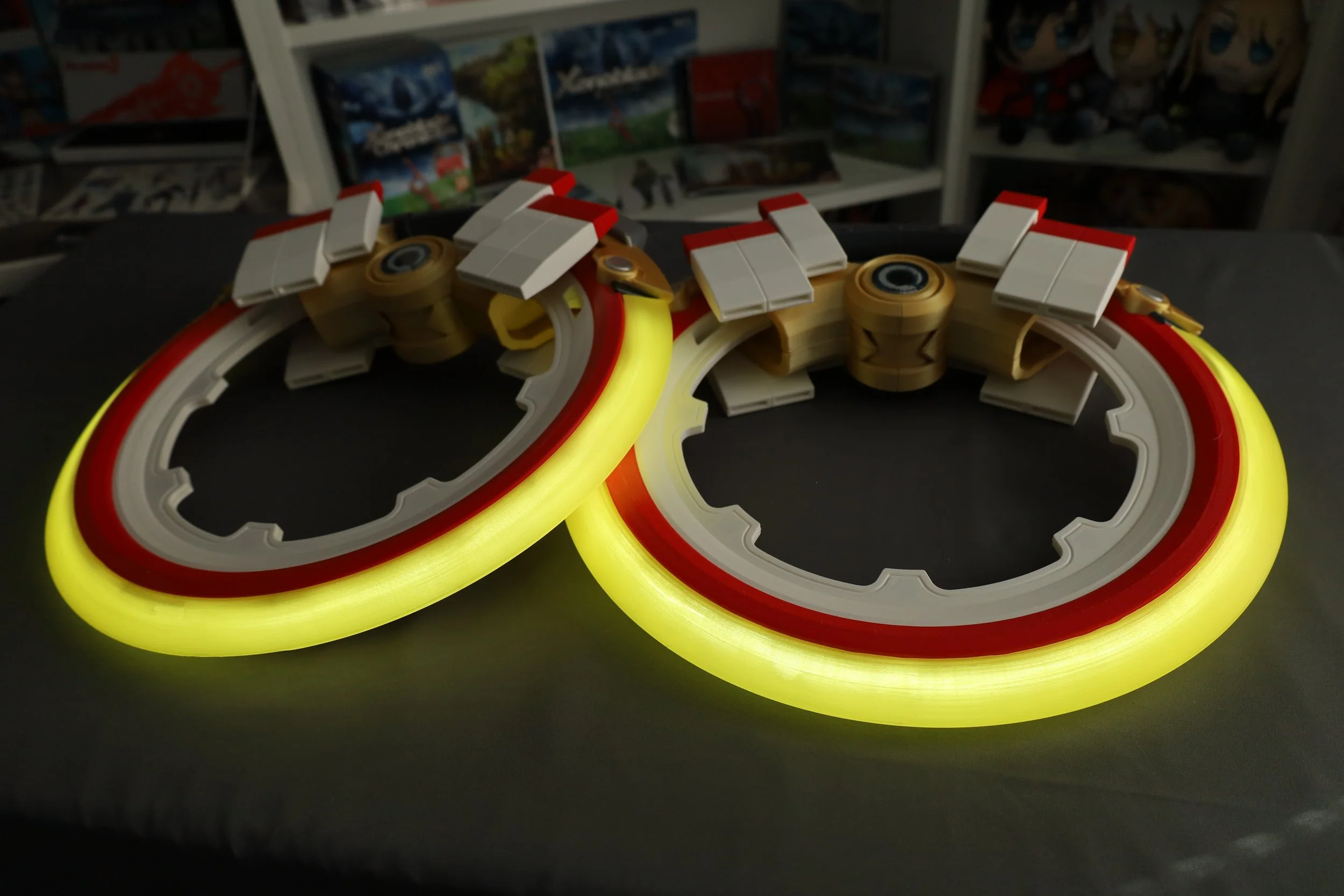 A lot of work went into these 3D printed rings with neon lights added, and a Orobous symbol (snake eating its tail) added to the cosplay prop. Although it make look painted Beyond 3D props does all his work with bamboo labs printer which color changing filament. Although the process took a long time the results came out amazing.